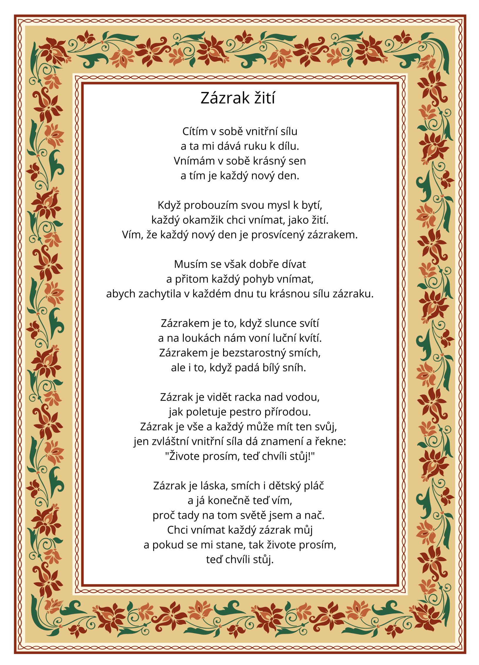 Kliknutím na tlačítko níže si můžete přečist moji autorskou báseň Zázrak žití (chráněno agenturou Dilia)